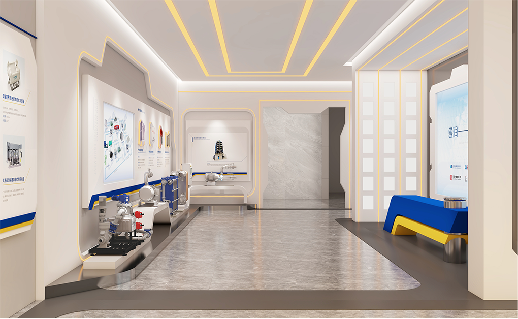 设计以“品质承匠心,鲁润达天下”为核心叙事,深度融合企业VI识别系统与换热器管道造型元素,构建贯穿始终的空间视觉基因。在兼顾实用性、美观性与经济性的前提下,以内容为纲,聚焦“好文化、好管理、好产品、好技术”四大板块,从文化厚度、技术深度、产品维度和品牌温度出发,架构企业历程、产品实力与未来愿景三大展区。通过沉浸式氛围营造、品牌故事融入与核心价值提炼,增强展厅感染力与记忆点,在有限预算内最大化空间价值,塑造更具竞争力与合作吸引力的品牌体验前沿阵地。